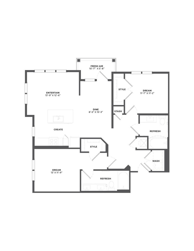 Apartment Model: A2From $1,3721 Bedroom, 1 Bath, 732 sq ftAvailable NowFloor plans are artist's rendering. All dimensions are approximate. Actual product and specifications may vary in dimension or detail. Not all features are available in every rental home. Please see a representative for details.