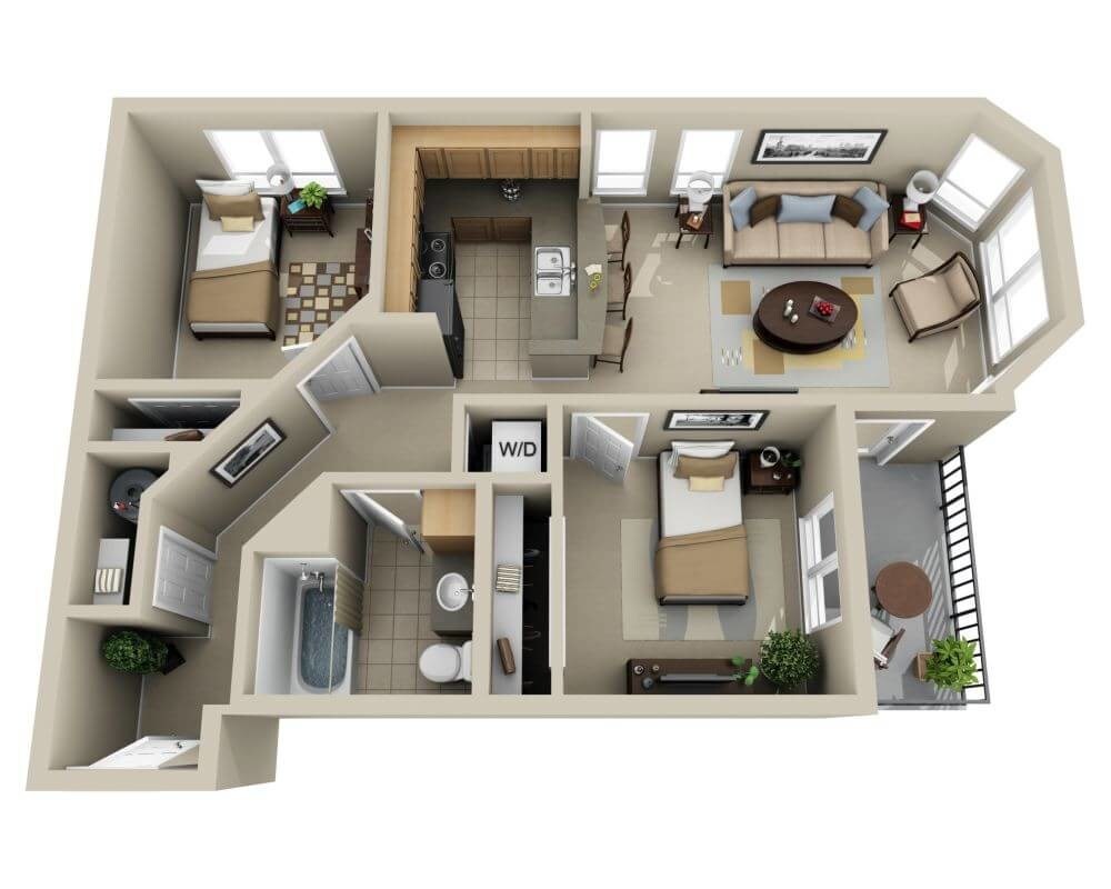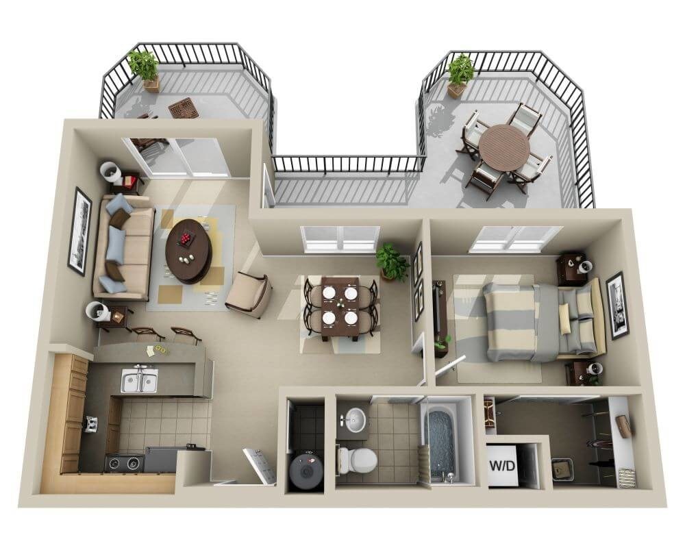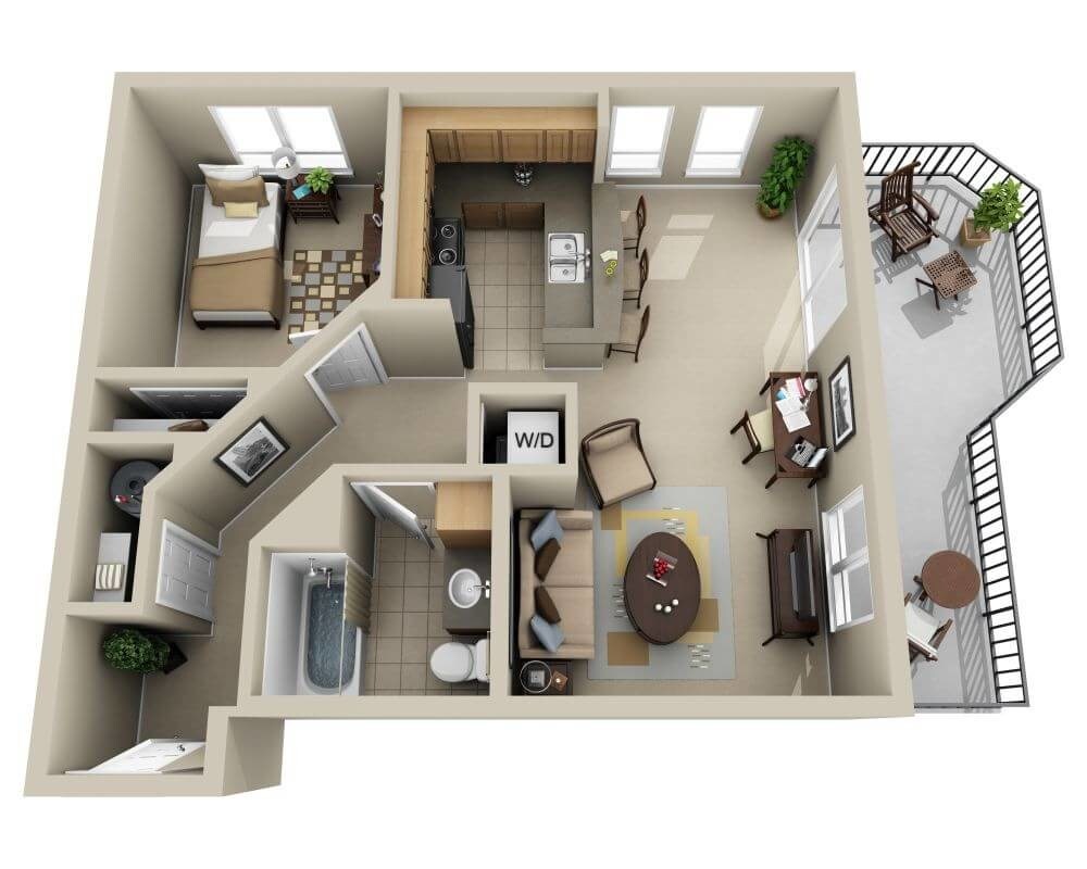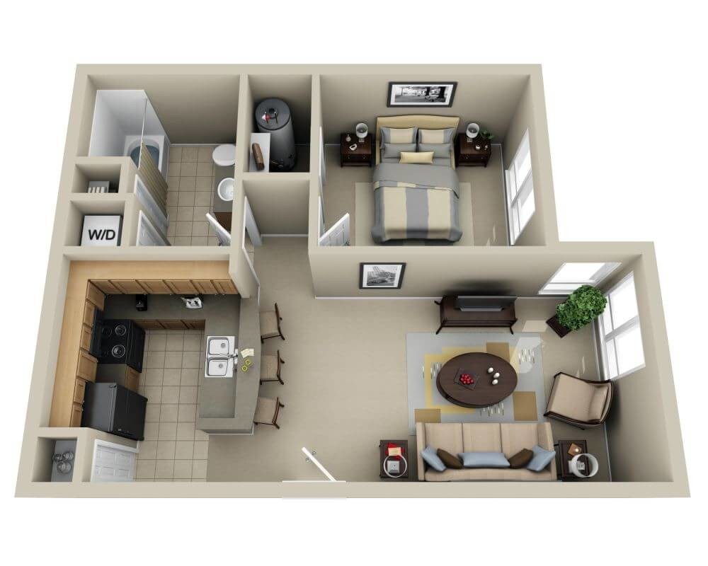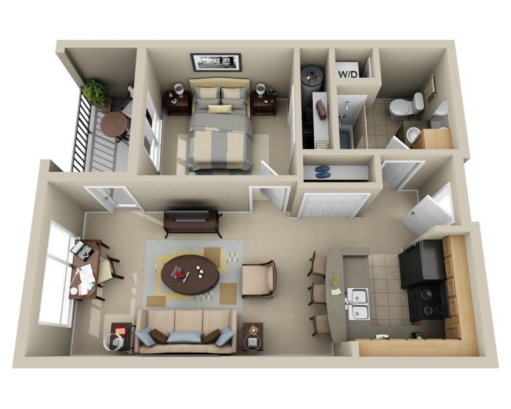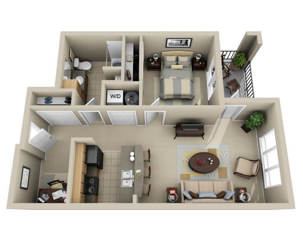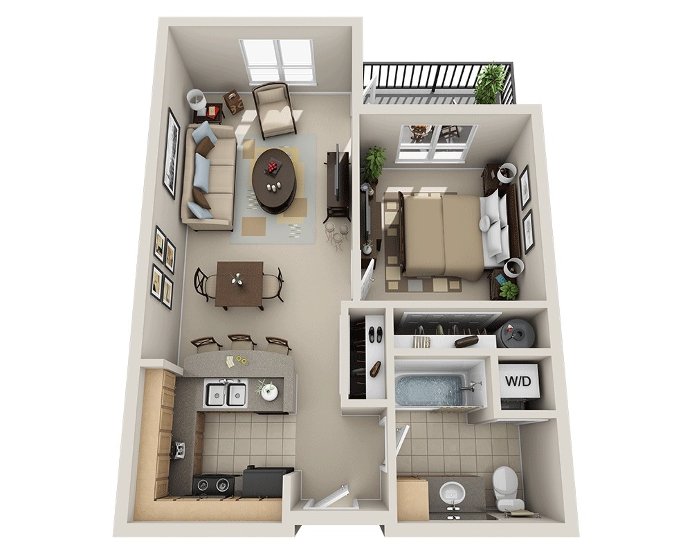 1 Bed, 1 Bath, 600 sq ftModel Gallery