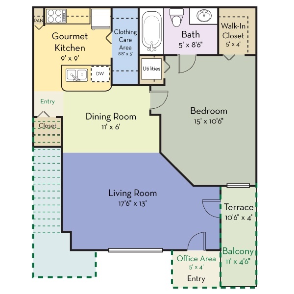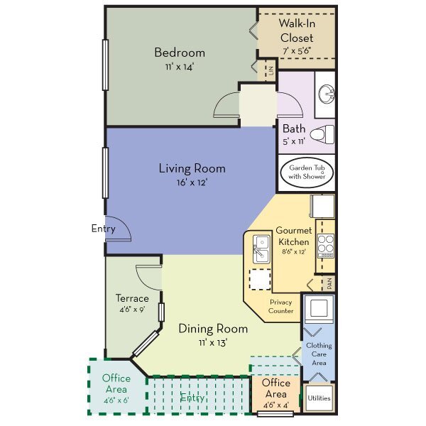 Studio, 1 Bath, 608 sq ftAvailable NowModel Gallery