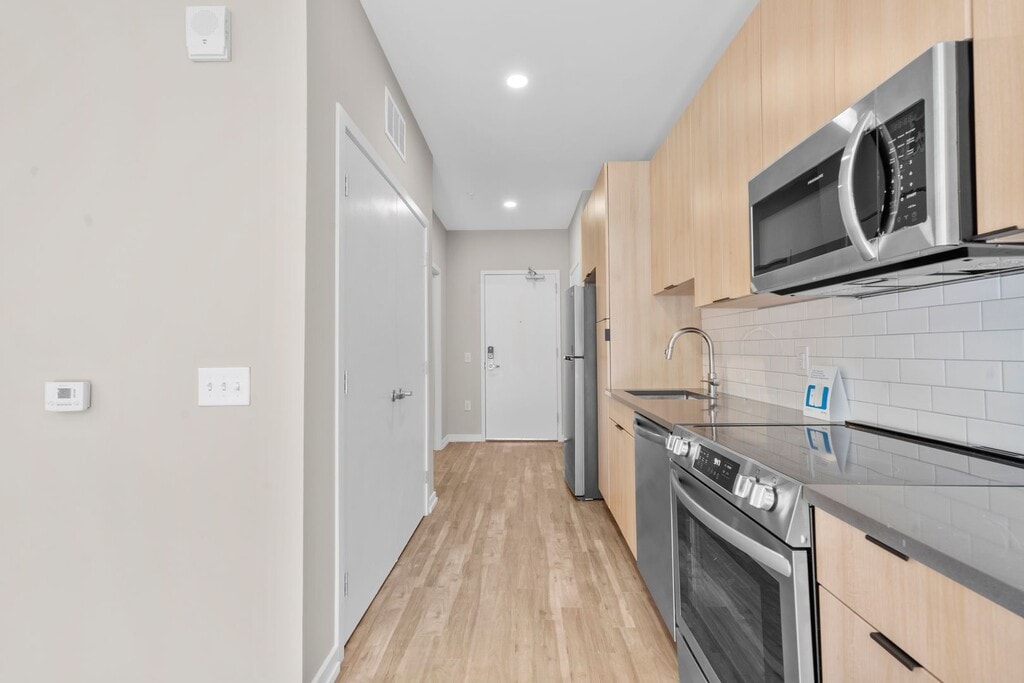 Welcome to your new home in Philadelphia, PA! This studio apartment offers a sleek, modern living experience with a host of desirable amenities. The apartment features a full bathroom and a spacious walk-in closet, providing ample storage space. The kitchen is equipped with top-of-the-line stainless steel appliances, and the hardwood floors add a touch of elegance to the space. Step out onto your private balcony for a breath of fresh air or to enjoy the city views. This pet-friendly community also boasts a dog park, perfect for your furry friends. For your convenience and enjoyment, the building offers a fitness center, a co-working space, and a community lounge. The rooftop deck is the perfect spot to relax and take in the stunning cityscape. Additionally, a conference room is available for your professional needs. Experience the perfect blend of comfort, convenience, and style in this remarkable apartment.