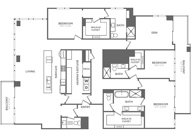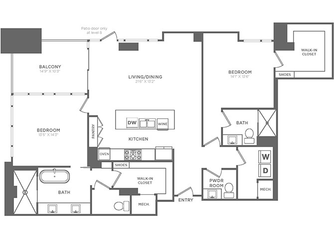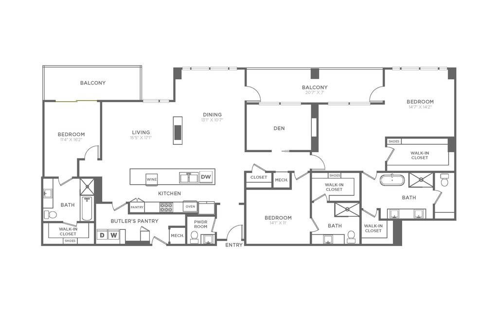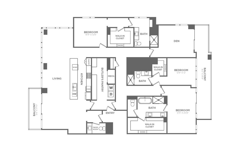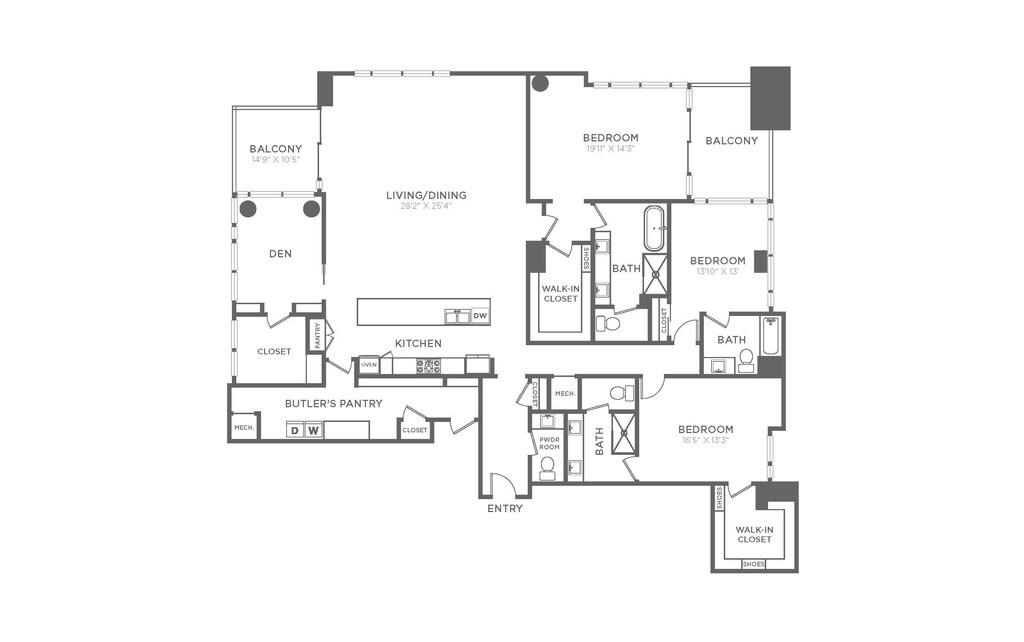- Private, oversized balconies