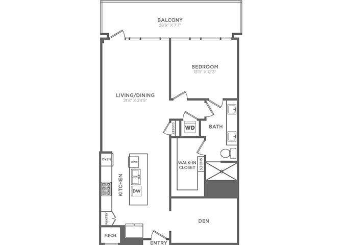 Apartment Model: TA4From $2,8971 Bedroom, 1 Bath, 1018 sq ftAvailable NowFloor plans are artist's rendering. All dimensions are approximate. Actual product and specifications may vary in dimension or detail. Not all features are available in every rental home. Prices and availability are subject to change. Base rent is based on monthly frequency. Additional fees may apply, such as but not limited to package delivery, trash, water, amenities, etc. Deposits vary. Please see a representative for details.
