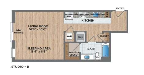 Studio, 1 Bath, 642 sq ftAvailable NowLargest StudioThis is the largest Studio at this PropertyModel Gallery