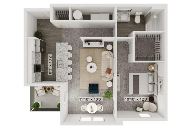 1 Bed, 1 Bath, 811 sq ftModel Gallery