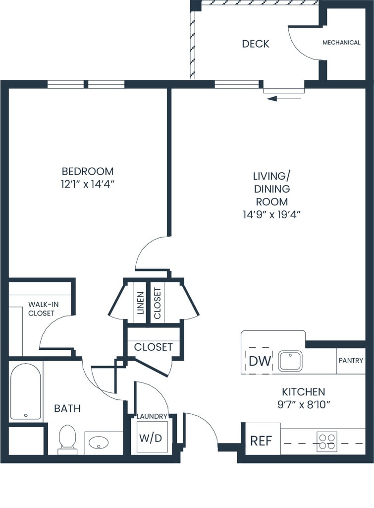 1 Bed, 1 Bath, 860 sq ftLargest 1 BedroomThis is the largest 1 Bedroom at this PropertyModel Gallery
