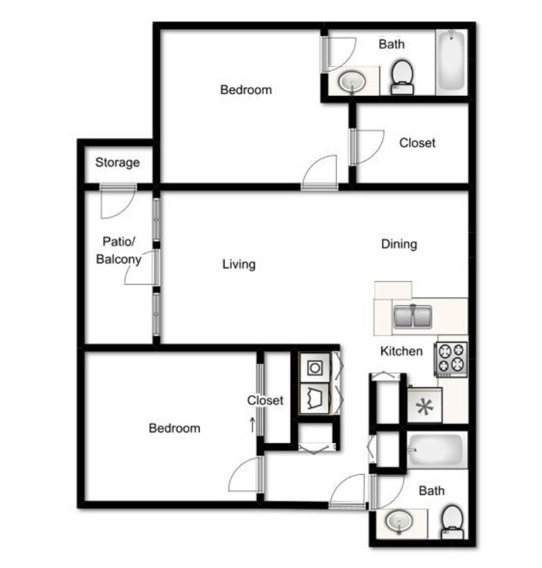 2 Beds, 2 Baths, 910 sq ftAvailable NowModel Gallery