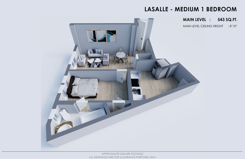 Studio to 1 Bedroom Apartments at The LaSalle currently range from $880 to $1,100