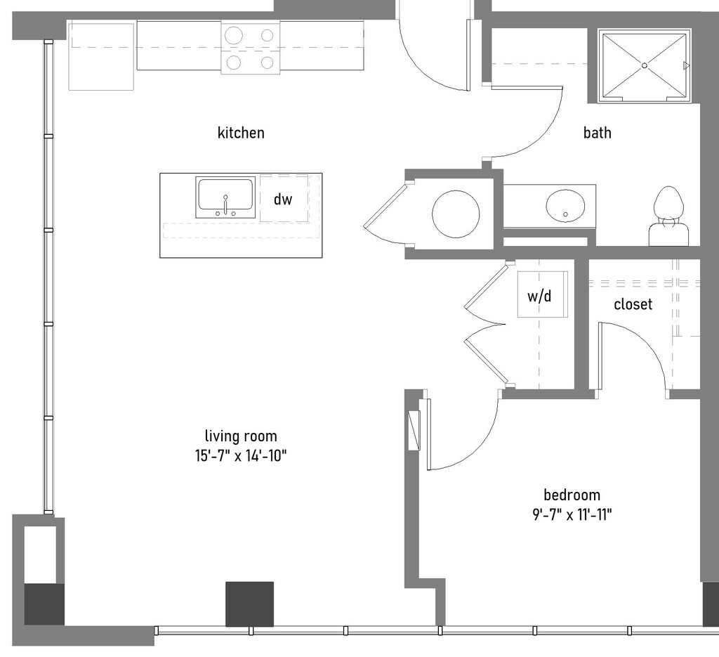 1 Bed, 1 Bath, 669 sq ftModel Gallery