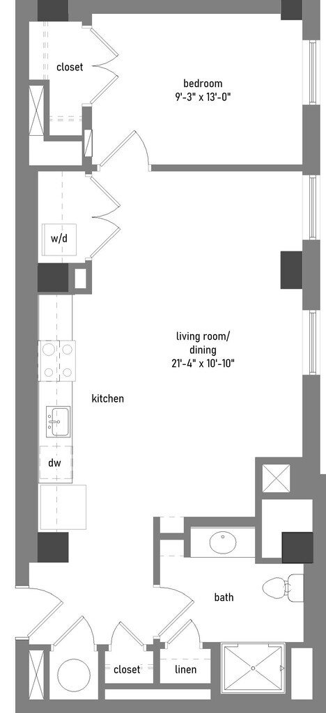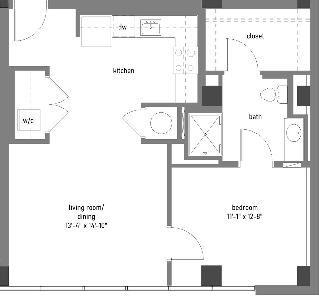 10C - Floorplan 3 Apartment Unit: 921Apartment Model: 10C$1,4991 Bedroom, 1 Bath, 639 sq ftAvailable NowFloorplan 10E