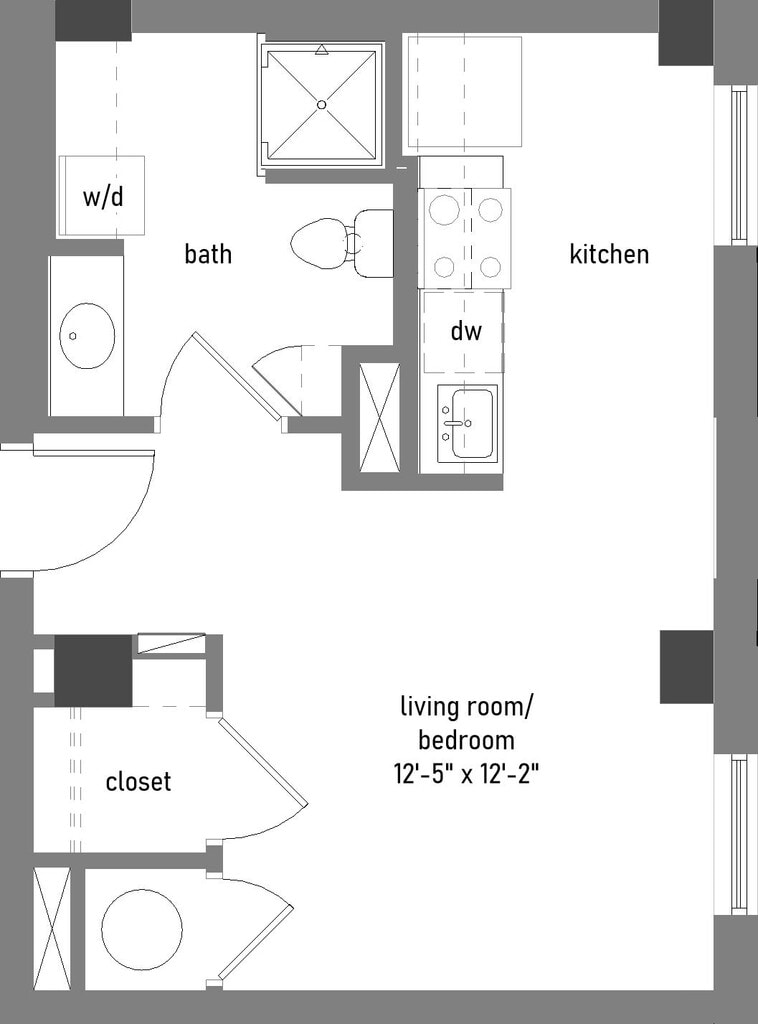 Studio, 1 Bath, 502 sq ftLargest StudioThis is the largest Studio at this PropertyModel Gallery