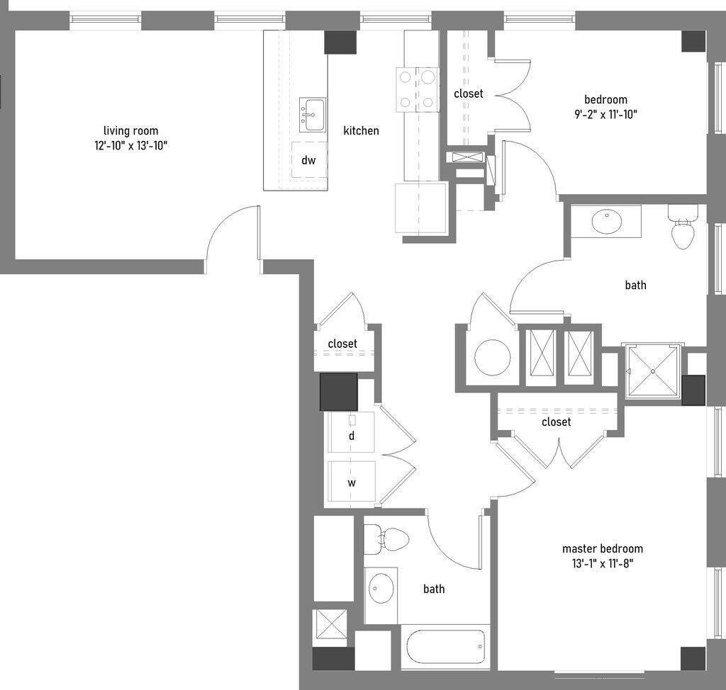 10E - Floorplan 3 Apartment Unit: 920Apartment Model: 10E$1,9991 Bedroom, 1 Bath, 915 sq ftAvailable NowFloorplan 6C