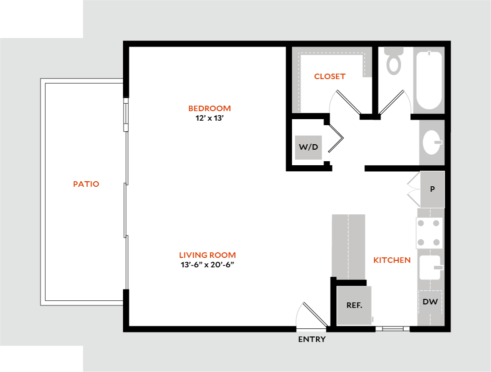 Studio, 1 Bath, 550 sq ftAvailable NowModel Gallery