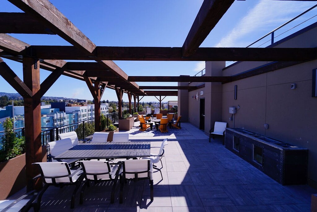 - 8th floor mezzanine outdoor space with BBQ and lounge area