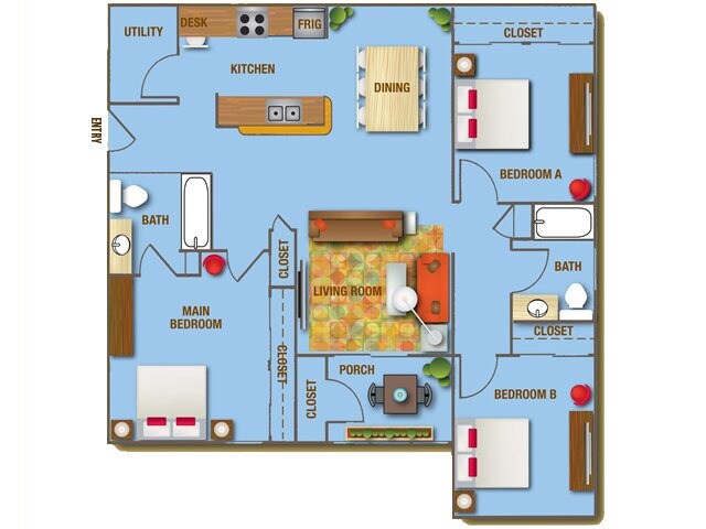 1 Bedroom to 3 Bedroom Apartments at The Lakes Apartments currently range from $1,000 to $1,500