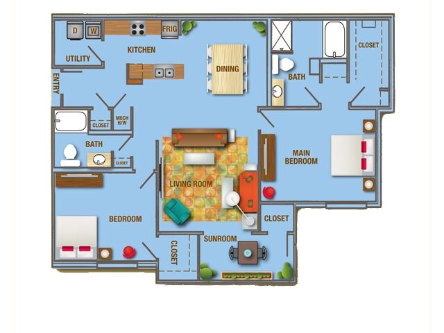 Lake Sinclair - Floorplan 1 Apartment Unit: 1300-1306Apartment Model: Lake SinclairFrom $1,1301 Bedroom, 1 Bath, 1010 sq ftAvailable January 8, 20262 Bedrooms