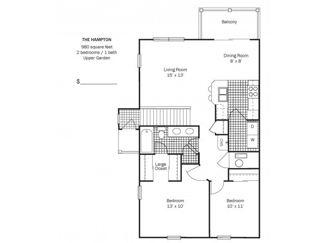 Apartment Model: The Hampton$1,3812 Bedroom, 1 Bath, 980 sq ftUnavailable![]()