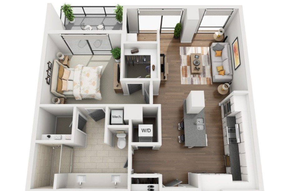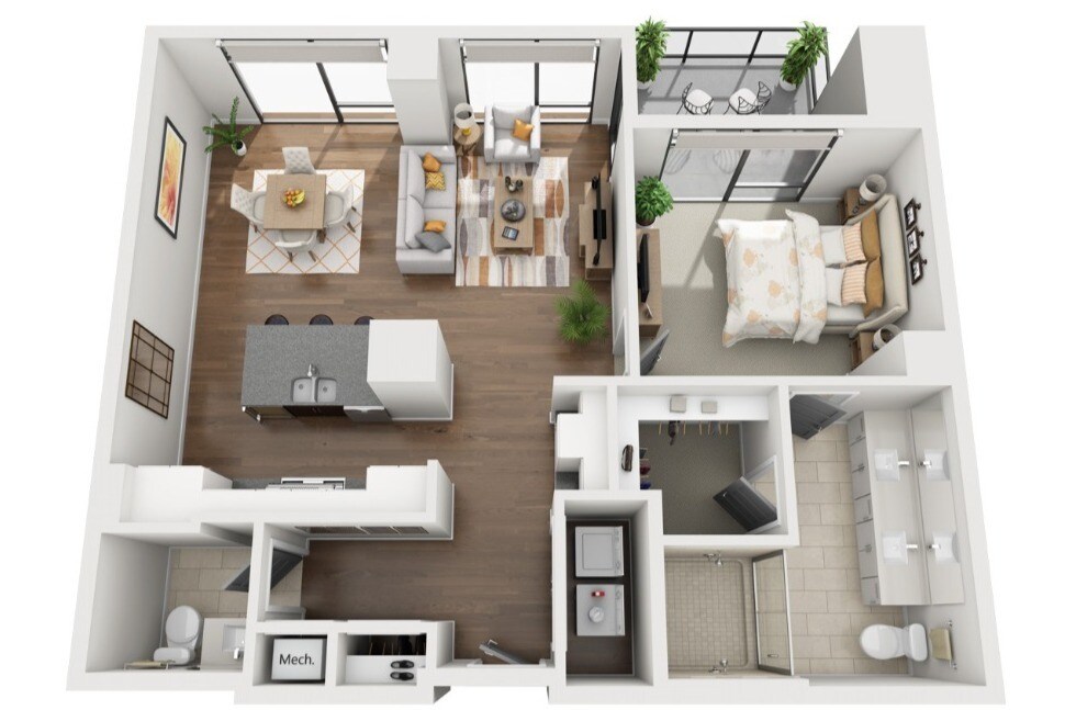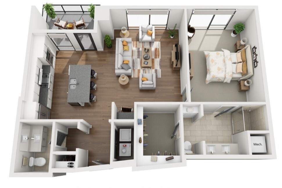 1 Bed, 1 Bath, 906 sq ftModel Gallery