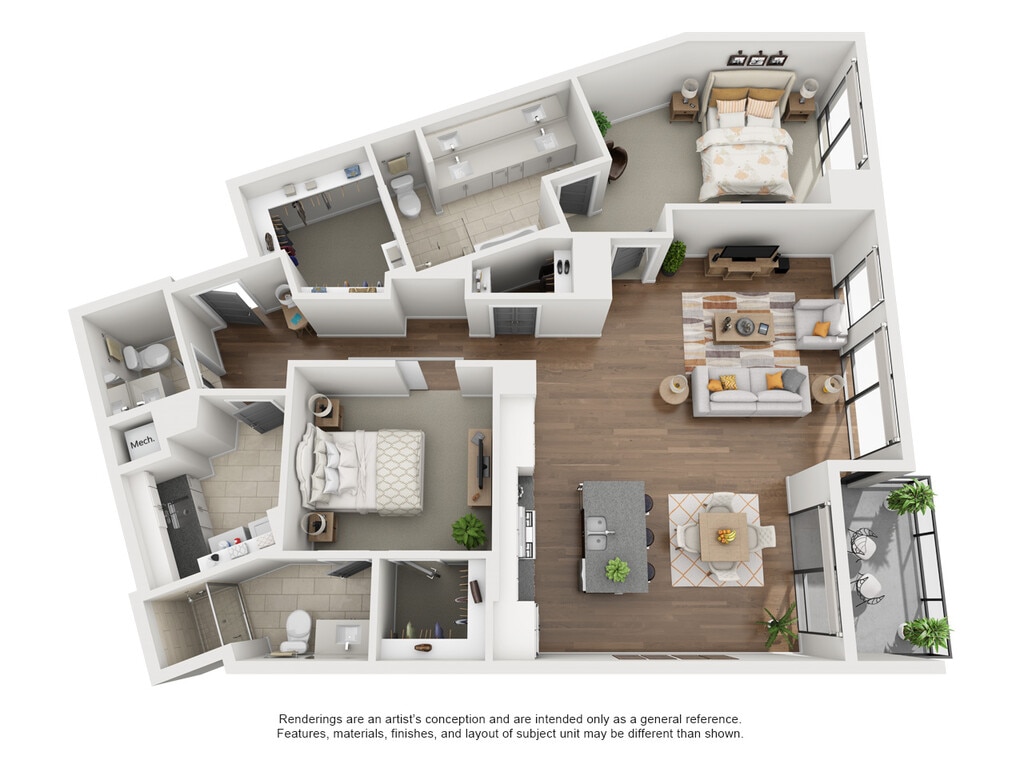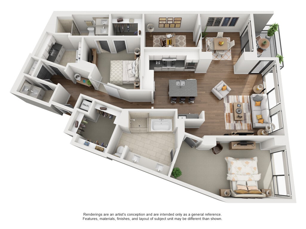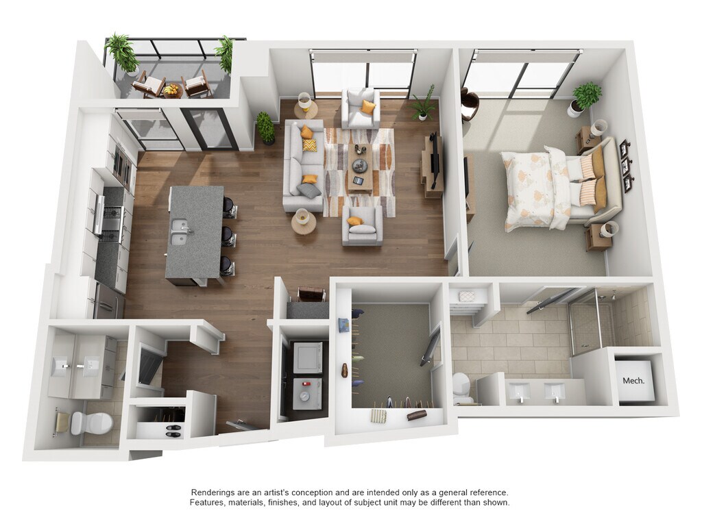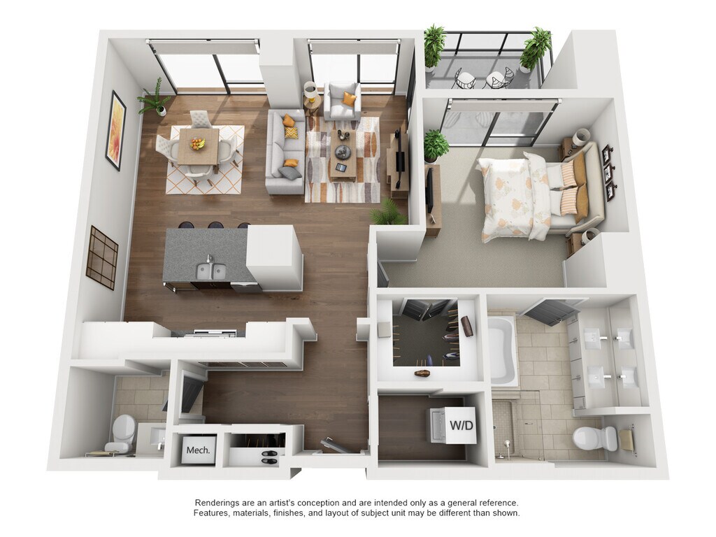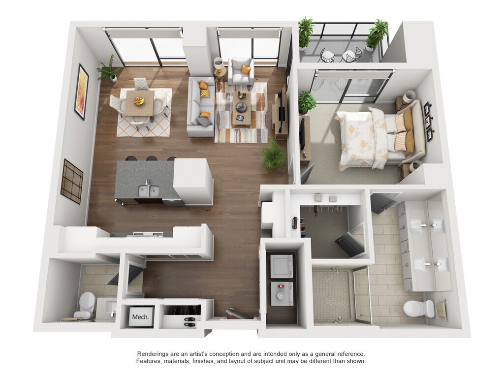 1 Bed, 1.5 Baths, 865 sq ftModel Gallery