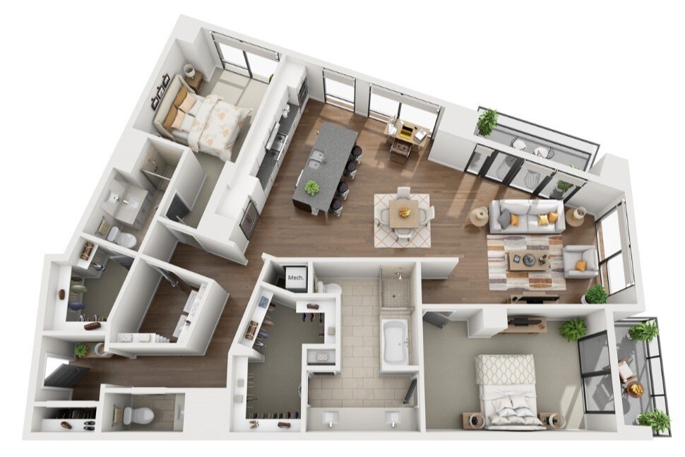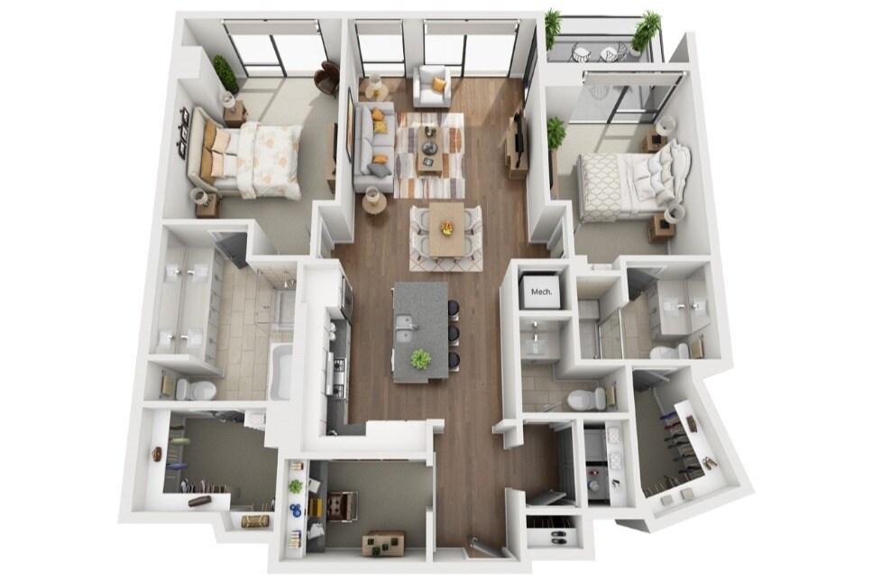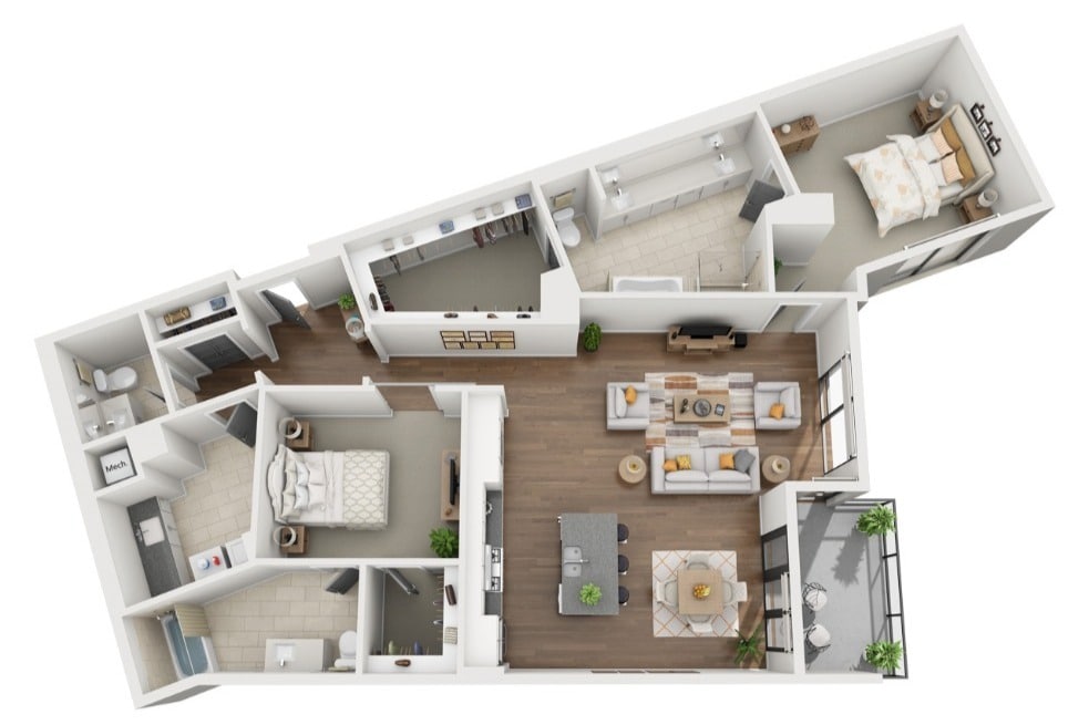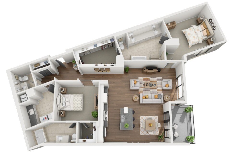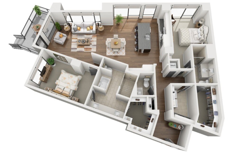Apartment Model: B3$2,5501 Bedroom, 1.5 Bath, 941 sq ftUnavailable![]()