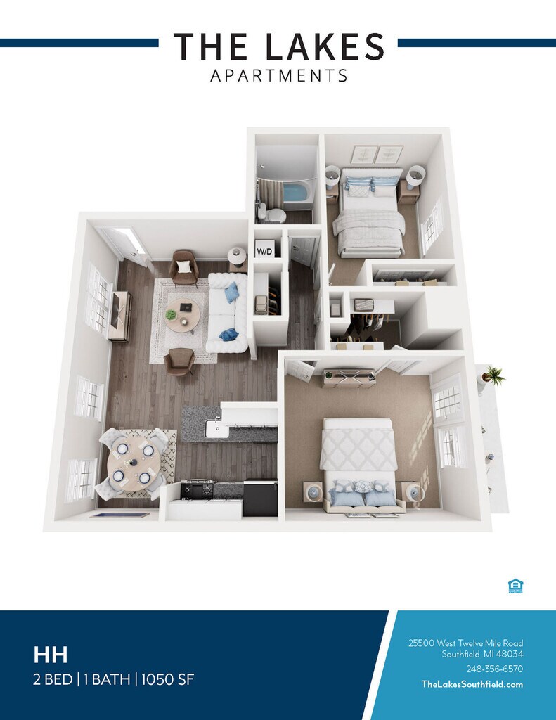 The Lakes Apartments offers a serene living environment with a convenient location that’s just minutes from major expressways like I-696 and Telegraph Road. These apartments feature fully renovated units with fireplaces, vaulted ceilings and in-unit washers and dryers. At The Lakes you’ll have access to many amenities, including a pool, fitness center, state-of-the-art clubhouse, as well as 5-star customer service from our onsite management and maintenance team. If you’re looking for the perfect place to call home, The Lakes is where you want to be. The Lakes is the best place to live in Southfield.
