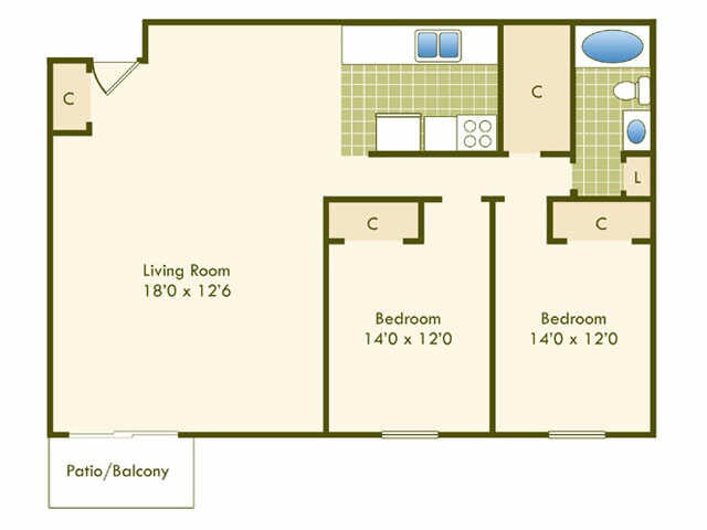 1 BR - Floorplan 1 2 Bedrooms