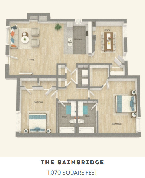 2 Beds, 2 Baths, 1036-1070 sq ftAvailability Details