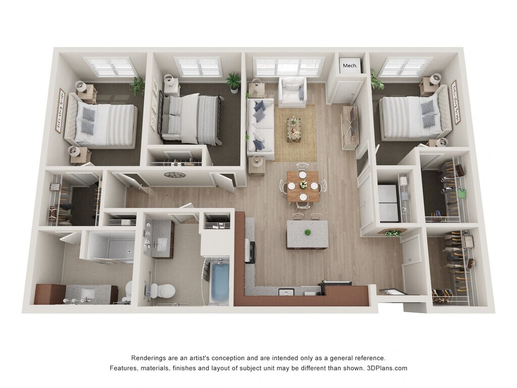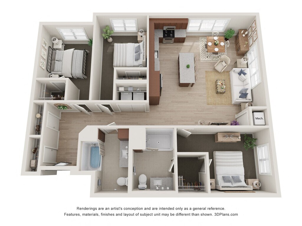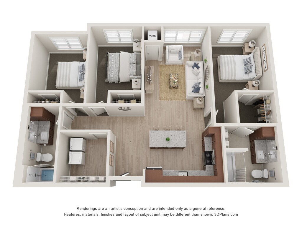 2 Bedroom 2 Bathroom - ADA - Floorplan 2 3 Bedrooms