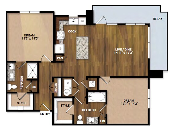 1 Bed, 1 Bath, 848 sq ftAvailable NowLargest 1 BedroomThis is the largest 1 Bedroom at this PropertyModel Gallery