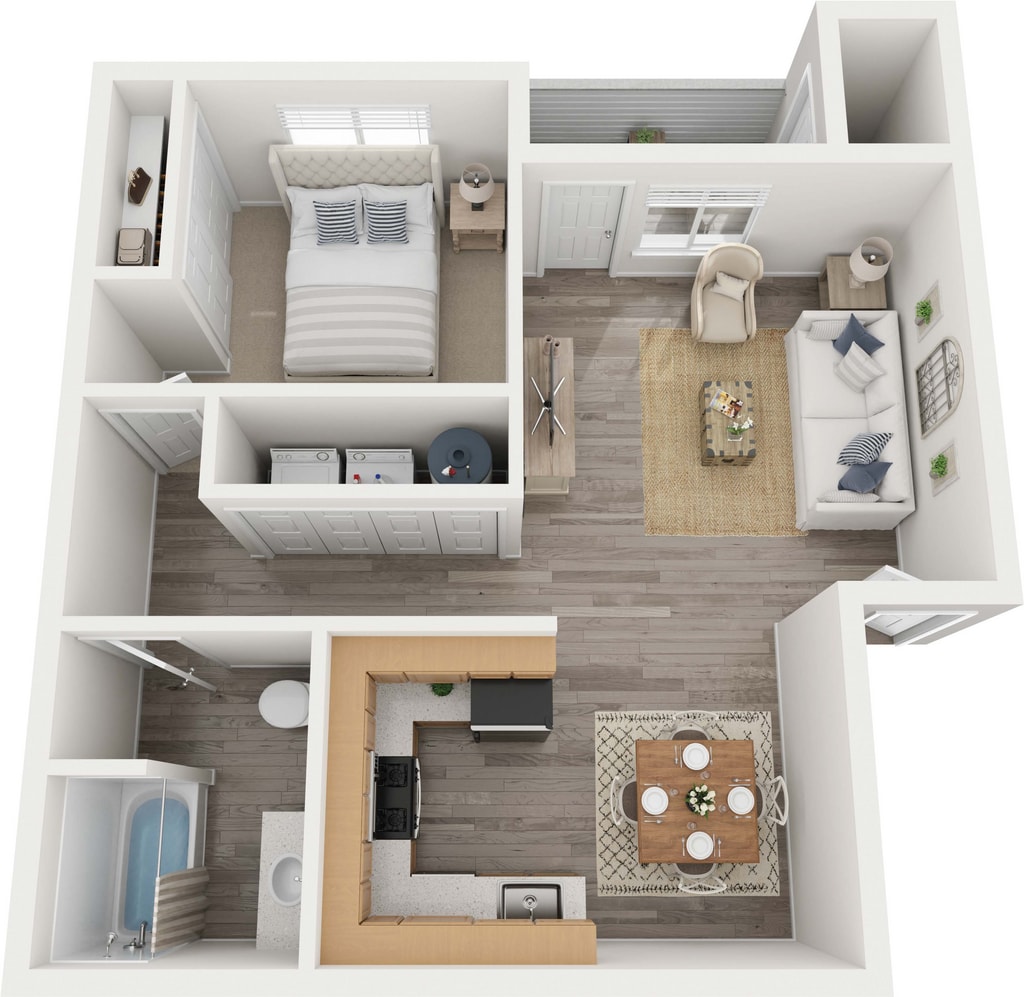 Apartment Model: Aspen (1x1)From $1,2251 Bedroom, 1 Bath, 677 sq ftAvailable NowFloorplansPhotos![]()