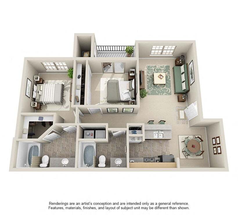 2 Beds, 2 Baths, 951 sq ftAvailable NowModel Gallery