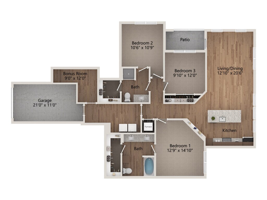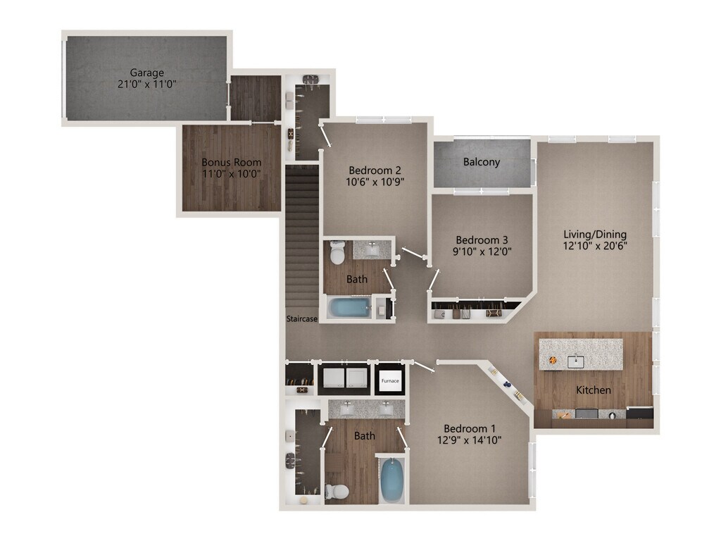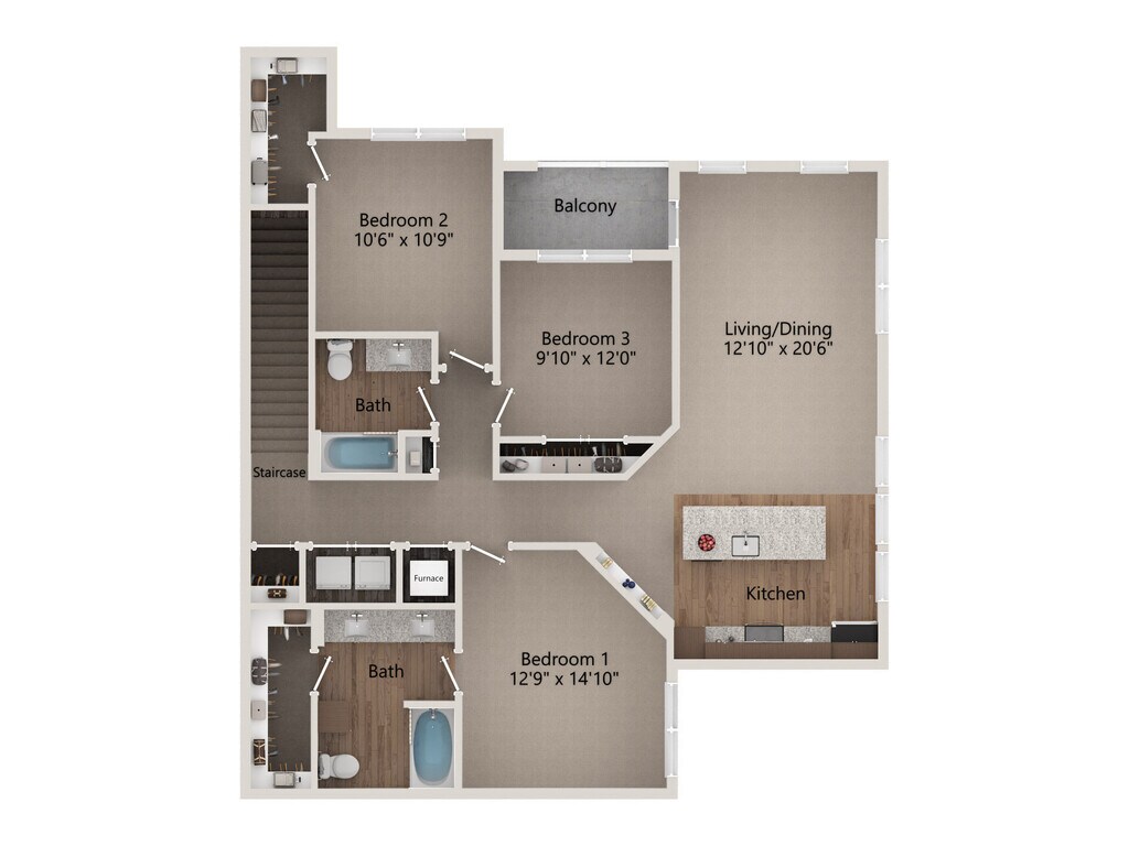 Apartment Model: A3-GFrom $1,4311 Bedroom, 1 Bath, 895 sq ftAvailable NowFloor plans are artist's rendering. All dimensions are approximate. Actual product and specifications may vary in dimension or detail. Not all features are available in every rental home. Prices and availability are subject to change. Base rent is based on monthly frequency. Additional fees may apply, such as but not limited to package delivery, trash, water, amenities, etc. Deposits vary. Please see a representative for details.