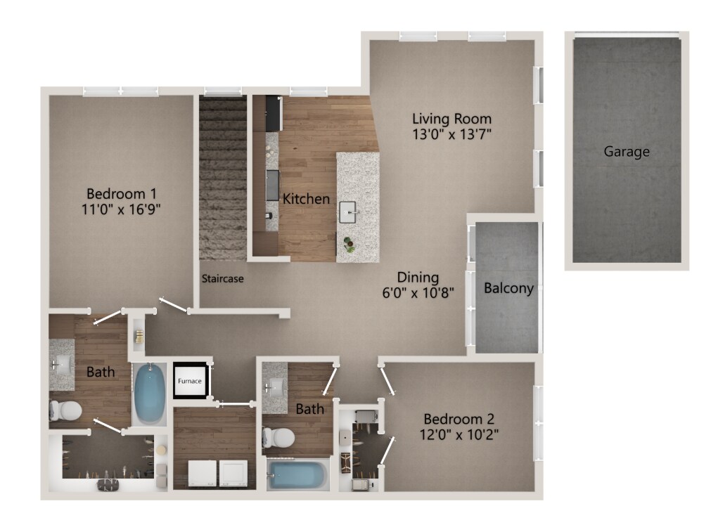 1 Bed, 1 Bath, 895 sq ftAvailable NowModel Gallery