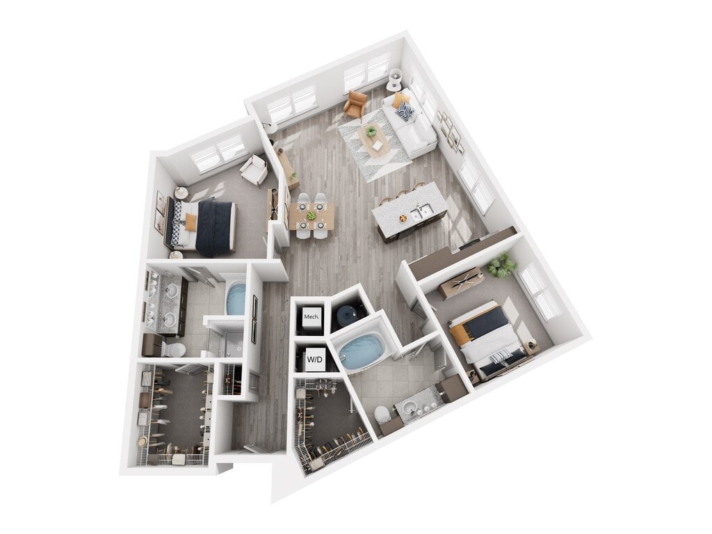 E - Floorplan 1 Apartment Unit: 2306Apartment Model: E$2,6711 Bedroom, 1 Bath, 986 sq ftAvailable November 13, 2025Floorplan D