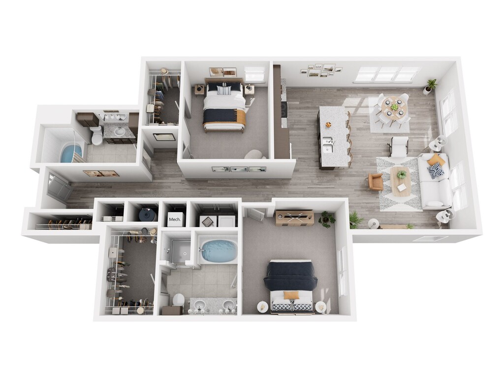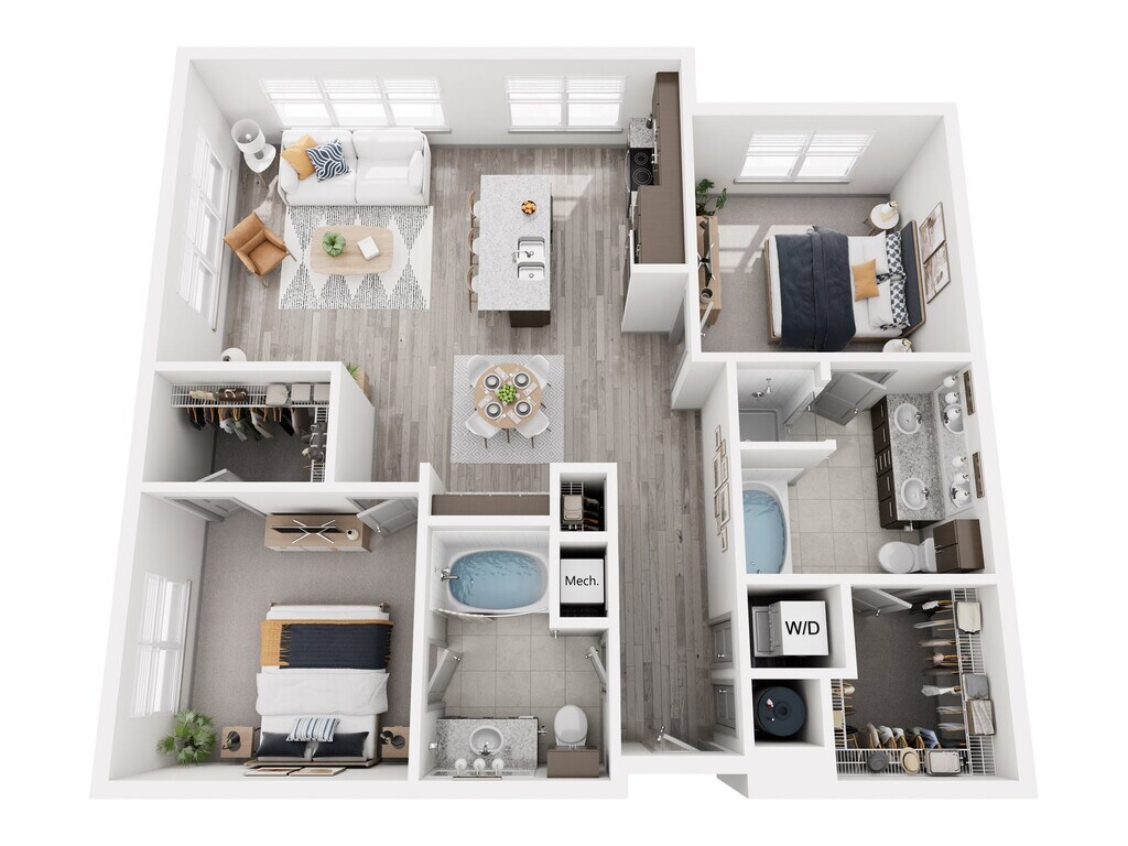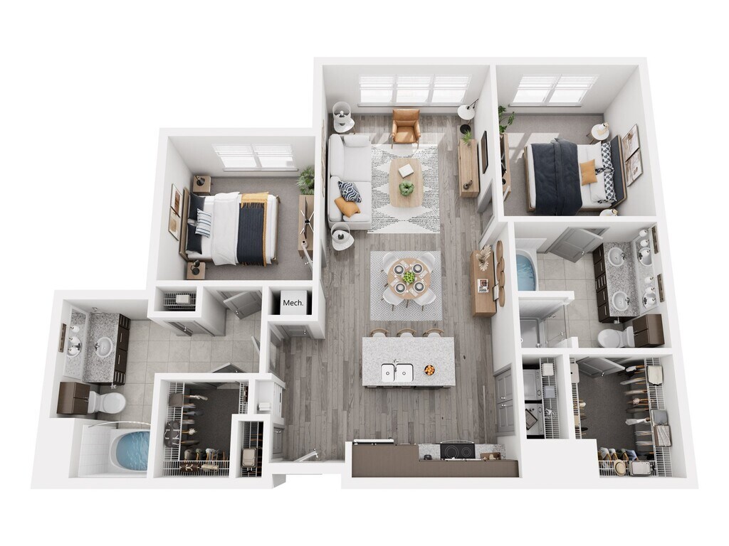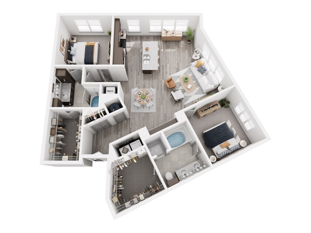 Apartment Model: EFrom $2,6711 Bedroom, 1 Bath, 986 sq ftAvailable November 13, 2025Floor plans are artist's rendering. All dimensions are approximate. Actual product and specifications may vary in dimension or detail. Not all features are available in every rental home. Prices and availability are subject to change. Base rent is based on monthly frequency. Additional fees may apply, such as but not limited to package delivery, trash, water, amenities, etc. Deposits vary. Please see a representative for details.