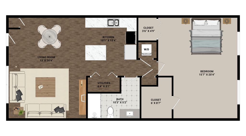 2 Beds, 1 Bath, 1000 sq ftAvailable NowModel Gallery