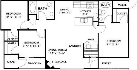 Pueblo 3 Bedroom Apartments | $1,829 | $1,099 | $2,473 |