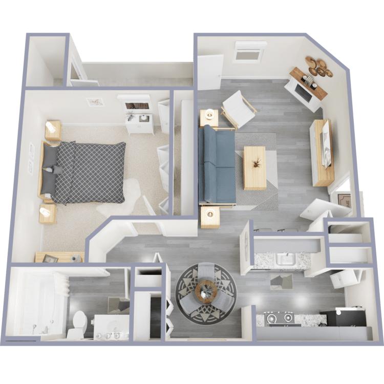 1 Bed, 1 Bath, 702 sq ftModel Gallery
