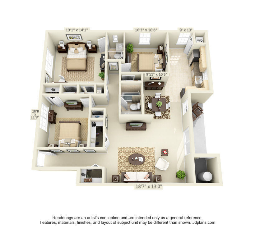 Apartment Model: Three Bedroom$2,3453 Bedroom, 2 Bath, 1150-1255 sq ftAvailable NowThree Bedroom - Floorplan 1 Apartment Unit: 142Apartment Model: Three Bedroom$2,3453 Bedroom, 2 Bath, 1150 sq ftAvailable Now