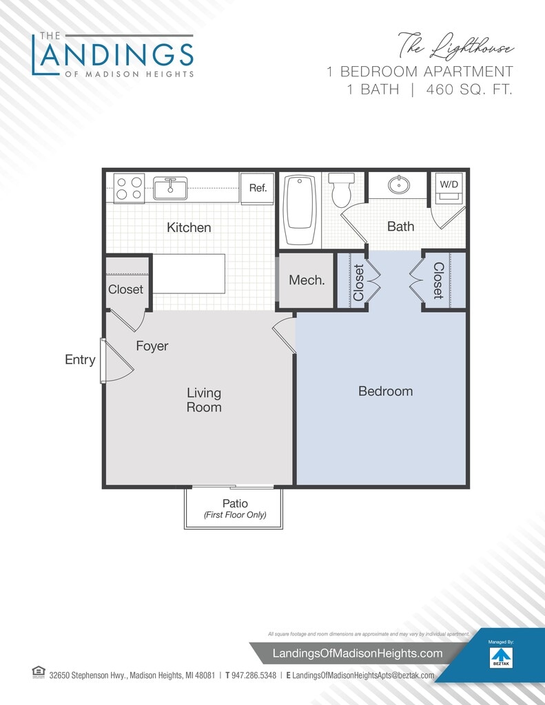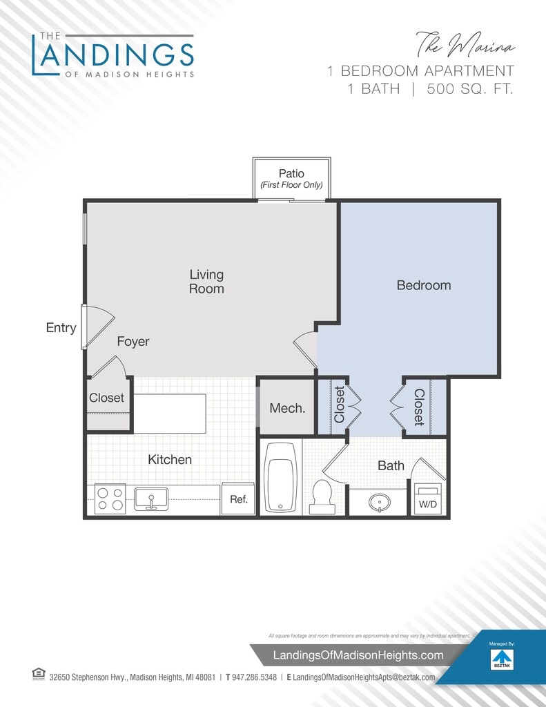 Experience modern living at The Landings at Madison Heights, a premier pet-friendly community where comfort meets convenience. Enjoy spacious studio, one-, and two-bedroom floorplans featuring unique multi-level designs, in-home washer and dryer, elegant countertops, stainless steel appliances, large closets, and central air and heat for year-round comfort. The community offers a resort-style swimming pool, cozy outdoor lounge with fire pit, expansive fenced dog park, and will soon feature a state-of-the-art fitness center and modern community clubhouse.Nestled in the heart of Madison Heights, MI, youll find a shopper's paradise with Oakland Mall, Costco, and Target all nearby, plus local restaurants and cafes just around the corner. When its time to unwind, enjoy local parks or play a scenic 9-hole round at Red Oaks Golf Course. With easy access to I-75 and I-696, youre minutes from Royal Oak, Ferndale, and all that Metro Detroit has to offer.This property is managed by Beztak.