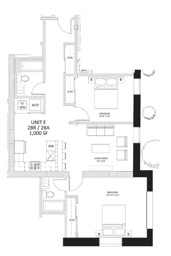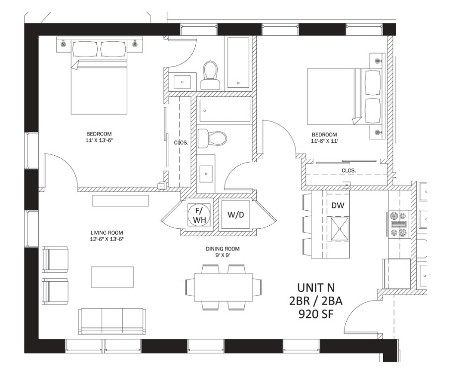 Apartment Model: Floor Plan FCall For Rates2 Bedroom, 1 Bath, 950 sq ftUnavailable![]()