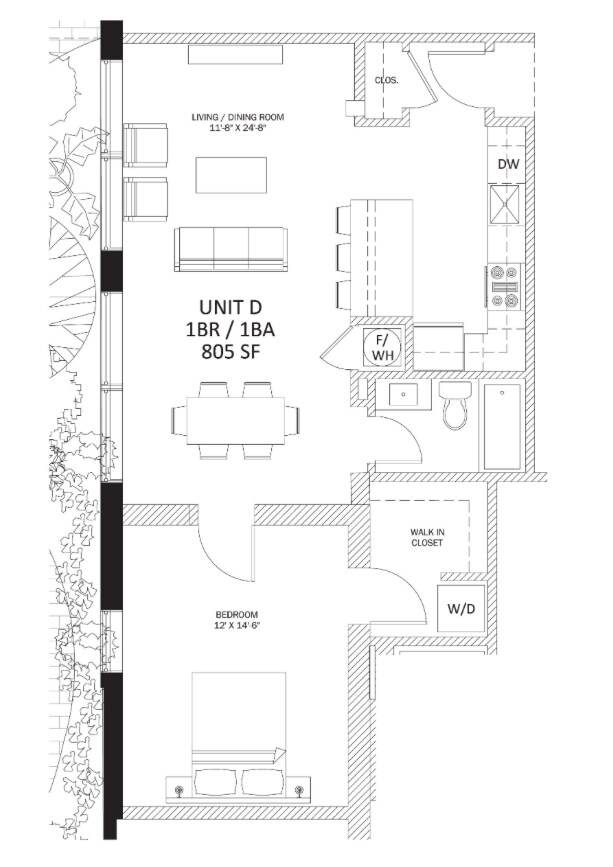 Apartment Model: Floor Plan DCall For Rates1 Bedroom, 1 Bath, 805 sq ftUnavailable![]()