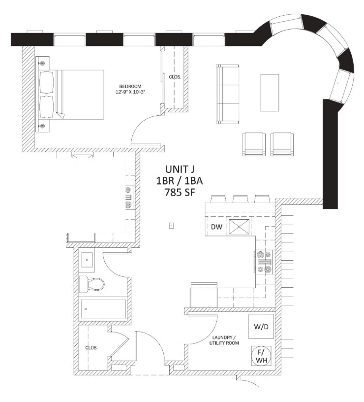 Floor Plan J - Floorplan 1 Apartment Unit: JApartment Model: Floor Plan J$1,2001 Bedroom, 1 Bath, 785 sq ftAvailable November 8, 2025Floor Plan G