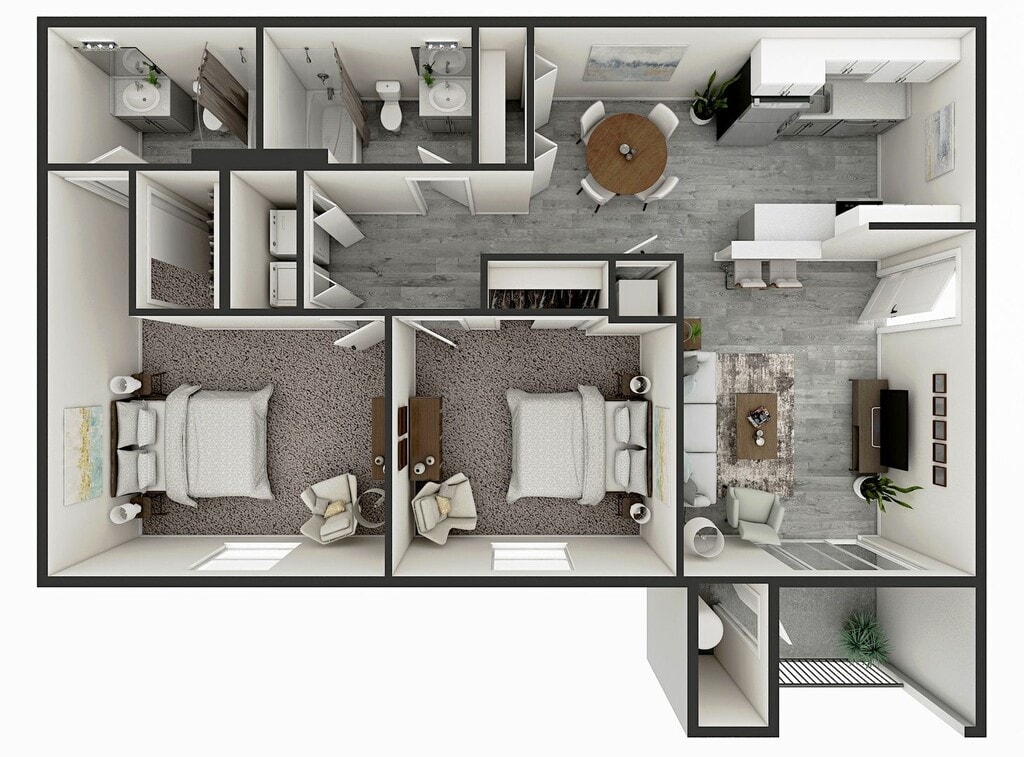 2 Beds, 2 Baths, 915 sq ftAvailable NowModel Gallery