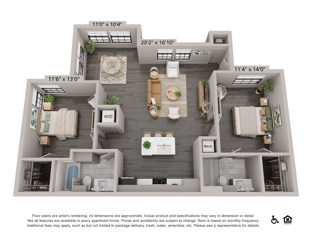 2 Beds, 2 Baths, 1108 sq ftAvailable NowModel Gallery
