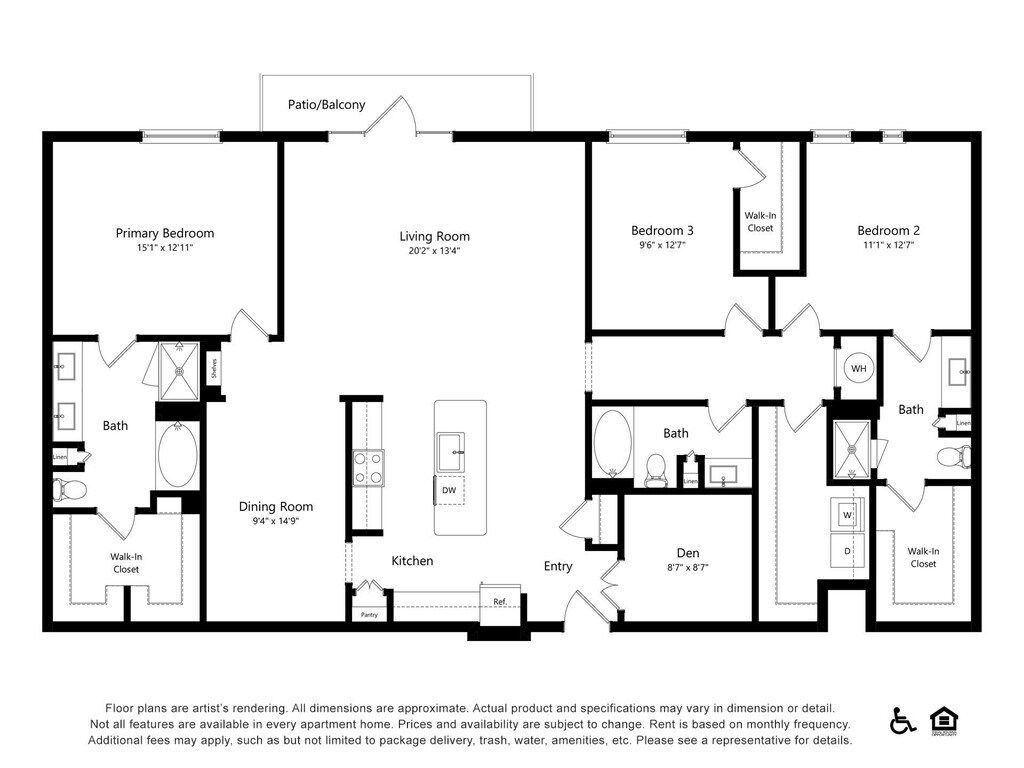 Apartment Model: A1From $2,4121 Bedroom, 1.5 Bath, 1073-1160 sq ftAvailable NowFloor plans are artist's rendering. All dimensions are approximate. Actual product and specifications may vary in dimension or detail. Not all features are available in every rental home. Prices and availability are subject to change. Base rent is based on monthly frequency. Additional fees may apply, such as but not limited to package delivery, trash, water, amenities, etc. Deposits vary. Please see a representative for details.