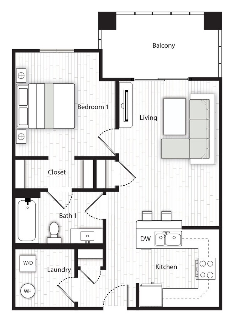 1 Bed, 1 Bath, 578 sq ftAvailable NowModel Gallery
