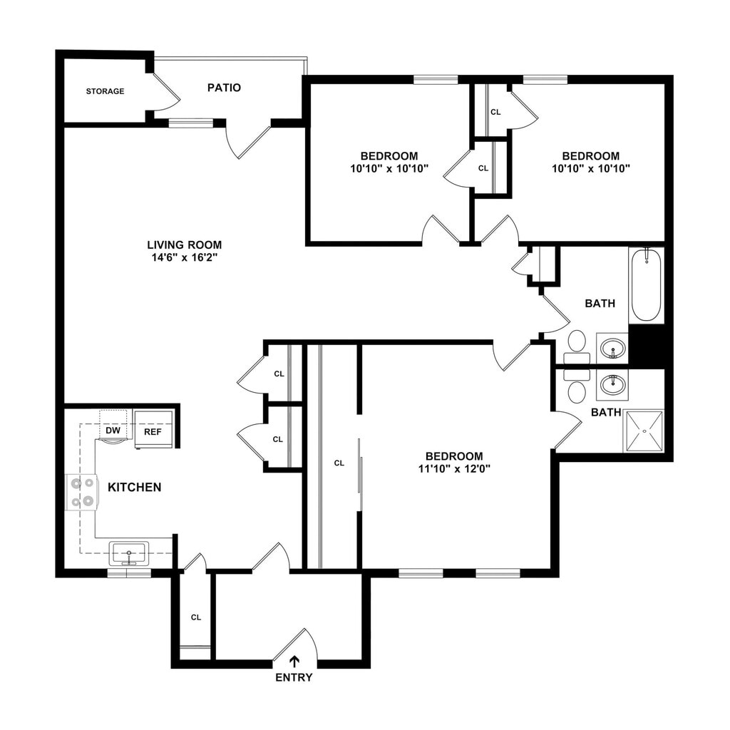 Apartment Model: Three Bedroom$1,2103 Bedroom, 1.5 Bath, 840 sq ftUnavailable![]()