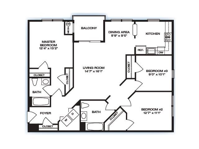 The Tiverton - Floorplan 1 Apartment Unit: 102Apartment Model: The Tiverton$2,2412 Bedroom, 1 Bath, 933 sq ftAvailable December 4, 20253 Bedrooms