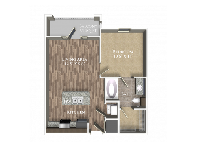1 Bed, 1 Bath, 570 sq ftAvailable August 21, 2026Model Gallery