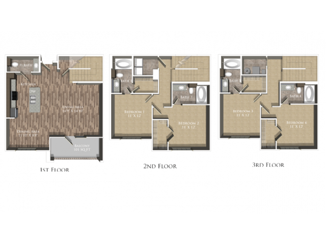 4 Beds, 4 Baths, 1435 sq ftAvailable August 21, 2026Cheapest 4 BedroomThis is the cheapest 4 Bedroom at this PropertyModel Gallery